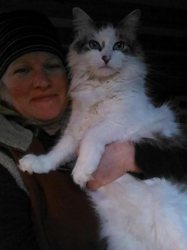 On the 5th day, the vet told me not to worry, that the cat will get dehydrated, he would come down. On the 6th day it rained, a lot. Finally, on the ninth day, my husband went on the roof with a neighbor for a small repair. The neighbor turned, saw the cat, threw a couple of roofing nails in his direction and yelled “get”; Buddy ran down out of that tree that minute!