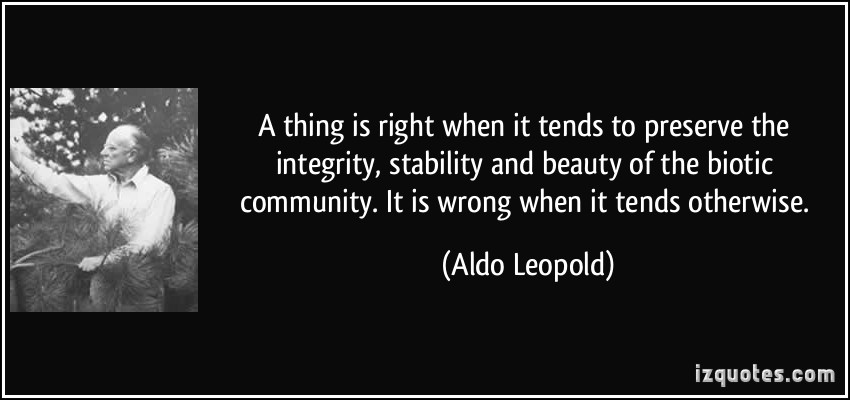 “We can be ethical only in relation to something we can see, feel, understand, love, or otherwise have faith in.” ~Aldo Leopold